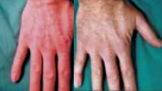 Part of the hospital staff get chronic skin problems (eczema, dry/cracking skin) caused by having to disinfect many times daily (up to 60 times). A US study reported: Irritant contact dermatitis is extremely common among nurses, ranging in prevalence surveys from 25% to 55%, and as many as 85% relate a history of having skin problems.Lampel HP, et al. Prevalence of hand dermatitis in inpatient nurses at a US hospital. Dermatitis. 2007;18:140–142